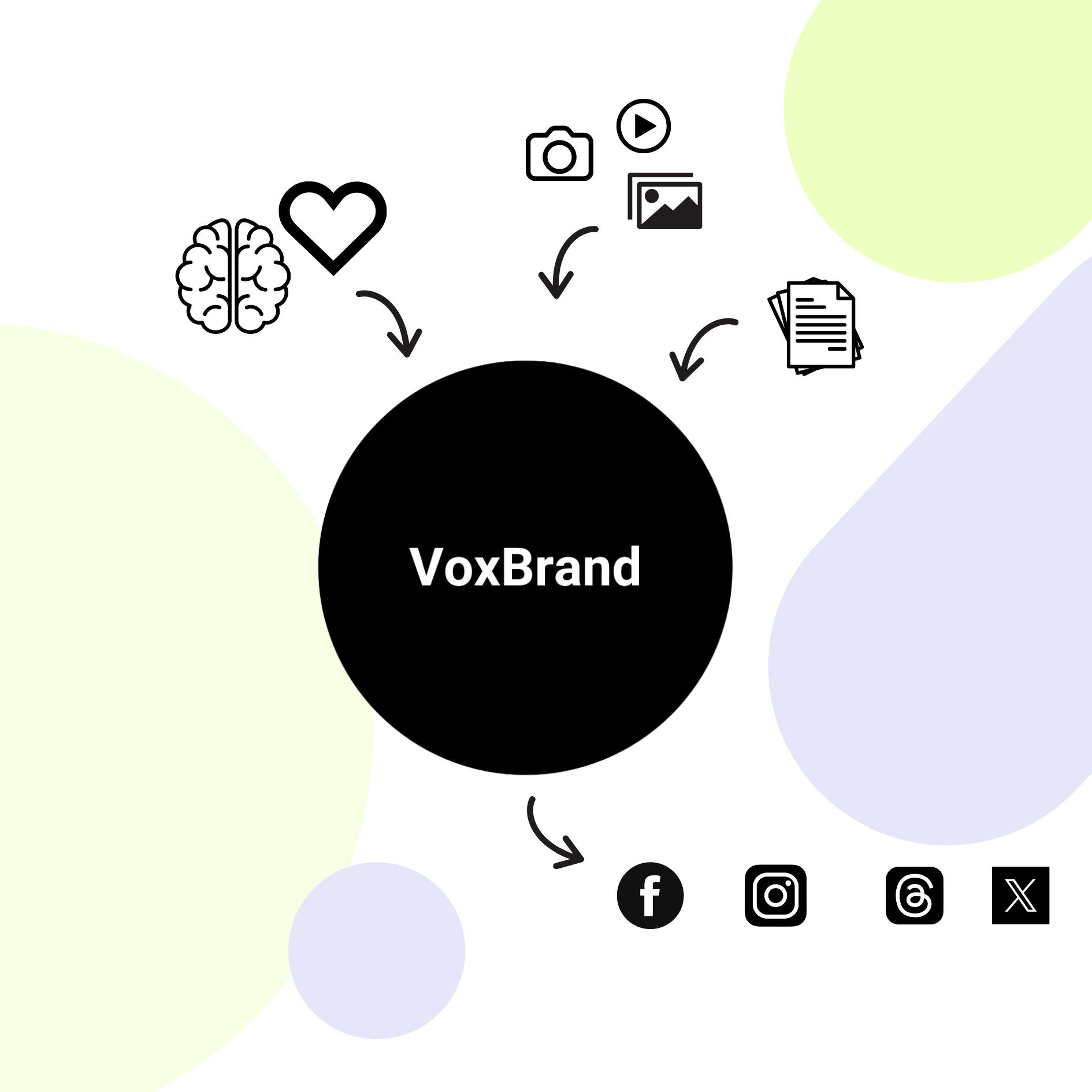 At the heart of VoxBrand is a system enhanced by robust AI-driven automation. This system seamlessly matches your writing style with your photos, videos, and preferred post formats - simple text, text with an image, text with a video or carousel posts. It identifies your key strengths and values, generating unique, engaging content that resonates with your target audience.